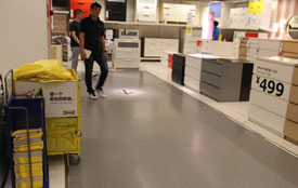 | 保養:由于PVC地板具有表面不滲透的性能,泥土和塵垢能從地板的表層徹底清除。用抹布及好的中型洗滌劑來清潔地面,接著用清水沖洗。微臟的地面右以用濕拖把擦,但也應該定期用抹布擦。嚴重臟或帶黑點可以用地面清潔機器來清潔,在任何擦或清除操作之后,必須用清水沖洗以清除所有殘余的清潔劑。表面強化處理技術有助于簡化清潔養護過程。終生無需打蠟上光,從而大量減少水、能源和化學品的使用,有益于環鏡保護。